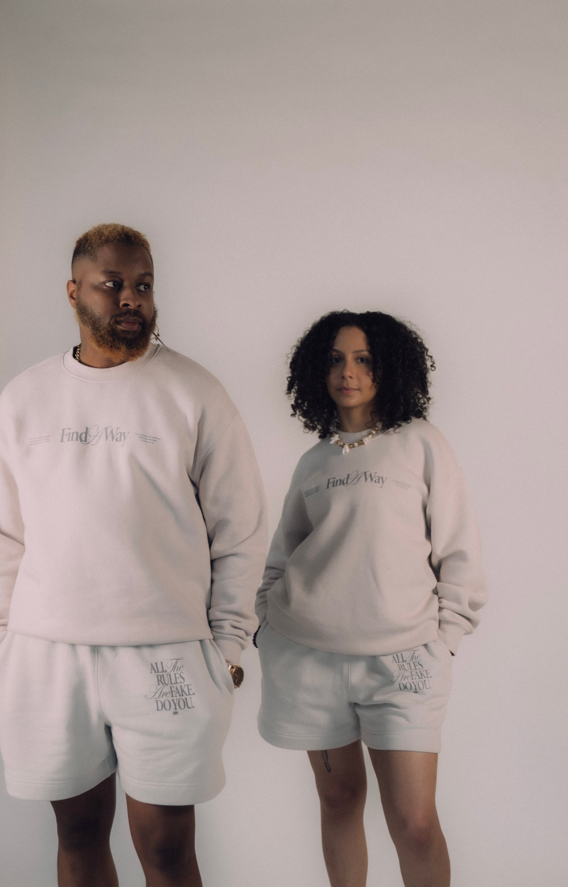 Built for comfort, made for statement. The All The Rules Are Fake Relaxed Crewneck pairs midweight French terry softness with a bold reminder: your life, no rules. Featuring a relaxed fit with inset sleeves, sturdy ribbed cuffs and hem, and minimalist core zinc lettering on an off-white, bone base. Wear it alone or match it with the Relaxed Shorts — sold separately but designed to live together.